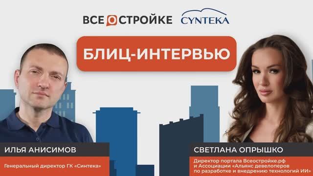 О деятельности компании, ее выходе на зарубежный рынок, использовании ИИ и планах на будущее в эксклюзивном интервью порталу Всеотройке.рф рассказал генеральный директор ГК «Синтека» Илья Анисимов. Задает важные вопросы Светлана Опрышко, директор портала Всеостройке.рф и Ассоциации «Альянс девелоперов по разработке и внедрению технологий ИИ».
