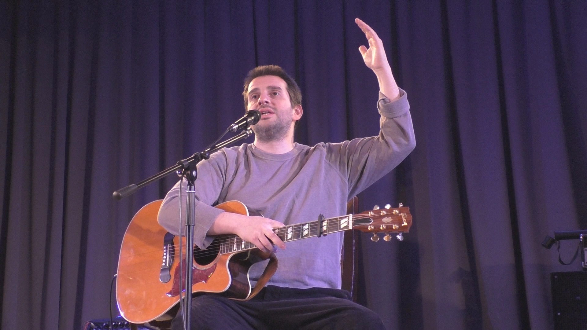 Концерт Петра Налича "Романсы и песни" в Доме еврейской культуры (ЕСОД) в Санкт-Петербурге, 23 февраля 2022 года. Состав: Пётр Налич (вокал, гитара, клавиши), Иван Жук (гитары, бэк-вокал), Сергей Сокулер (контрабас, бэк-вокал).