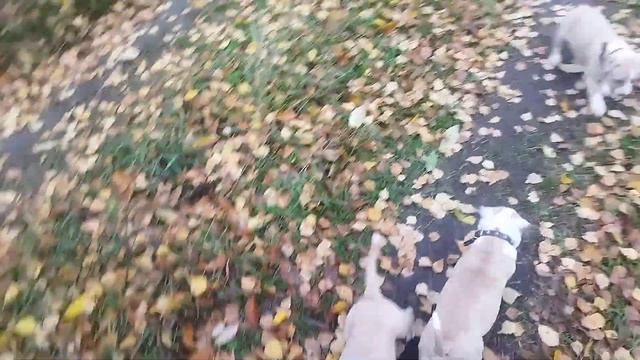 щенки амстаффа 43 дня, октябрьские прогулки.