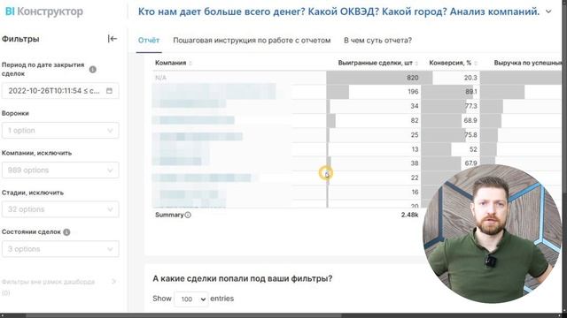 Готовы бесплатный отчет: Кто наши клиенты по ОКВЭД, городу, выручке.