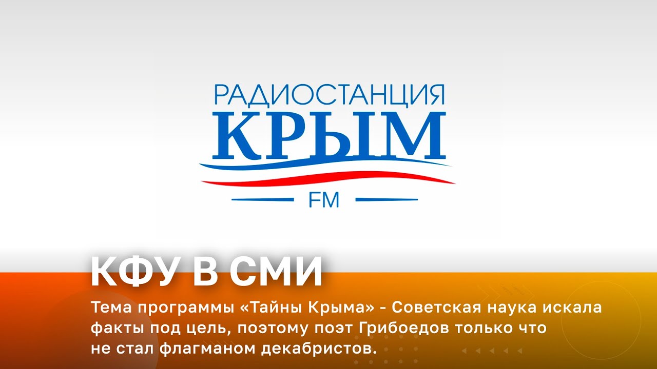 Радио «Крым». В эфире – доцент Института филологии КФУ им. В.И. Вернадского Сергей Минчик «Тайны Крыма» - Советская наука искала факты под цель, поэтому поэт Грибоедов только что не стал флагманом декабристов. Два века спустя мы вряд ли можем утверждать, что дипломат Грибоедов поддерживал заговорщиков. Скорее, наоборот.
