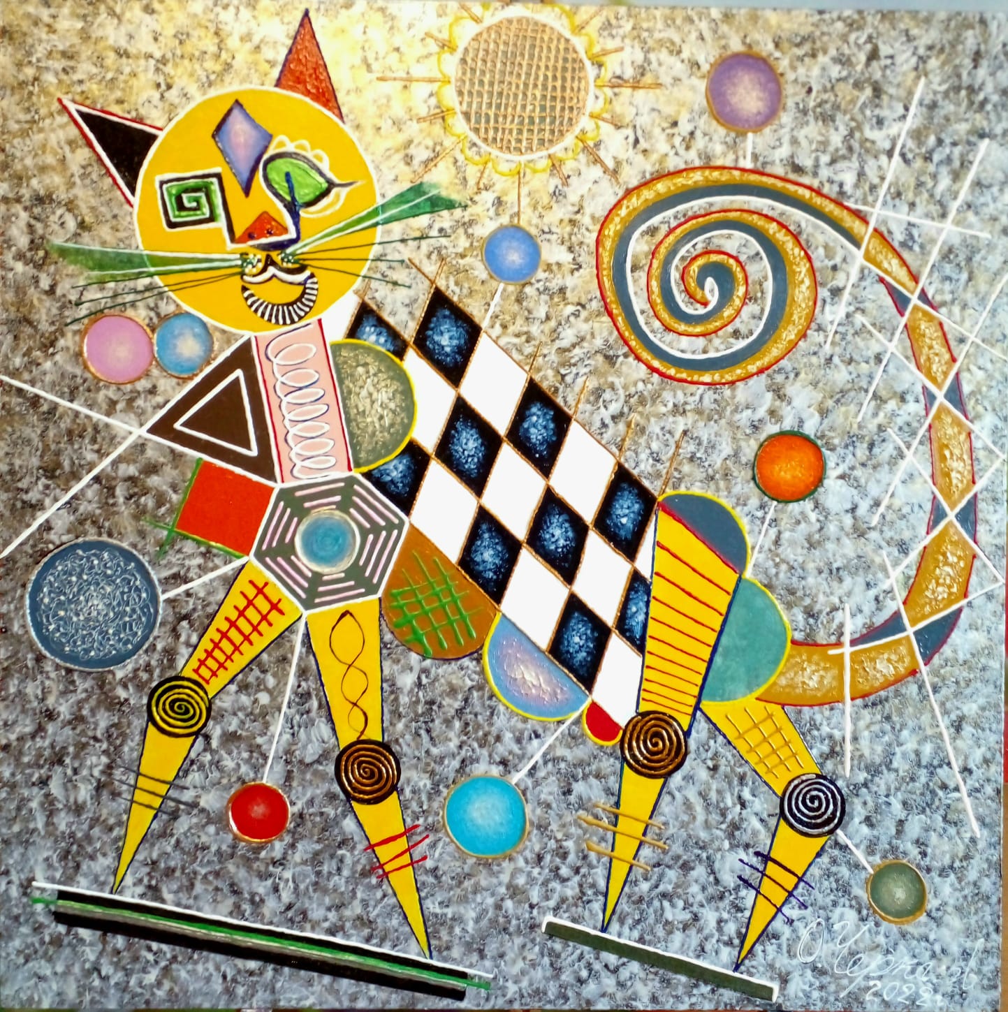 "Танцующий кот Багуа" 95х95 х/м акрил. Художник Олег Черкасов. Как говорит сам художник: "направление в живописи - абстрактный сюрреализм с элементами метафизики, вдохновляюсь архаичными рекордами, алхимии и эзотерики". Работает в г. Зеленоградске, Калининградской области. #ХудожникиКалининграда #ХудожникОлегЧеркасоовЗеленоградск #ИскусствоКалининграда #КартиныОлегаЧеркасова #Живопись #Kaliningrad #Калининград #абстракционизм Поддержать канал карта 2200 7302 4517 4350 МИР