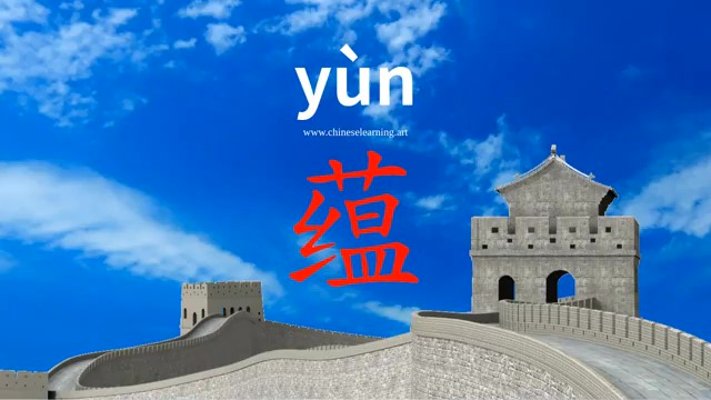 蕴 (yùn) depth; inner strength; profundity; to accumulate; hold in store; contain; gather together