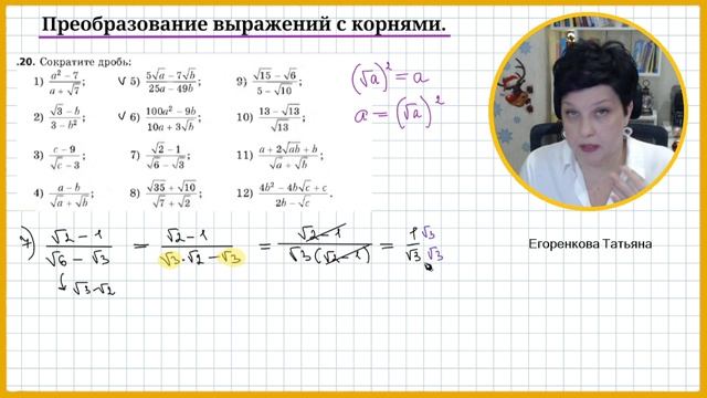 Сократите дробь с корнями 8 класс часть 1