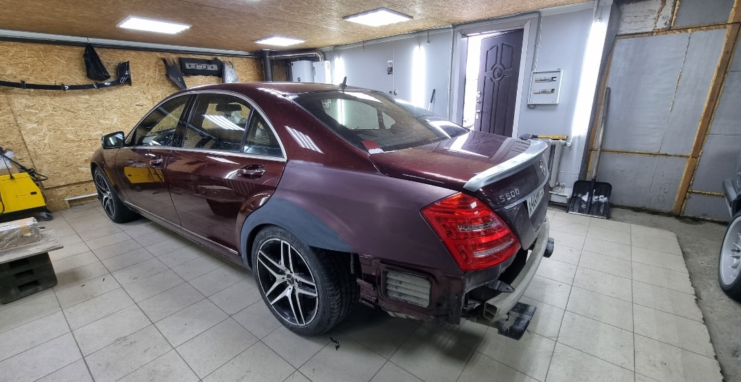 Мерседес w221..Ремонт задних арок и покраска крыльев.