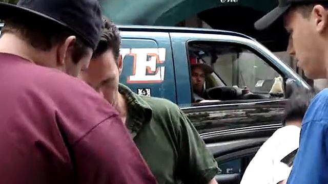 Kevin Dillon signing for fans outside his hotel.