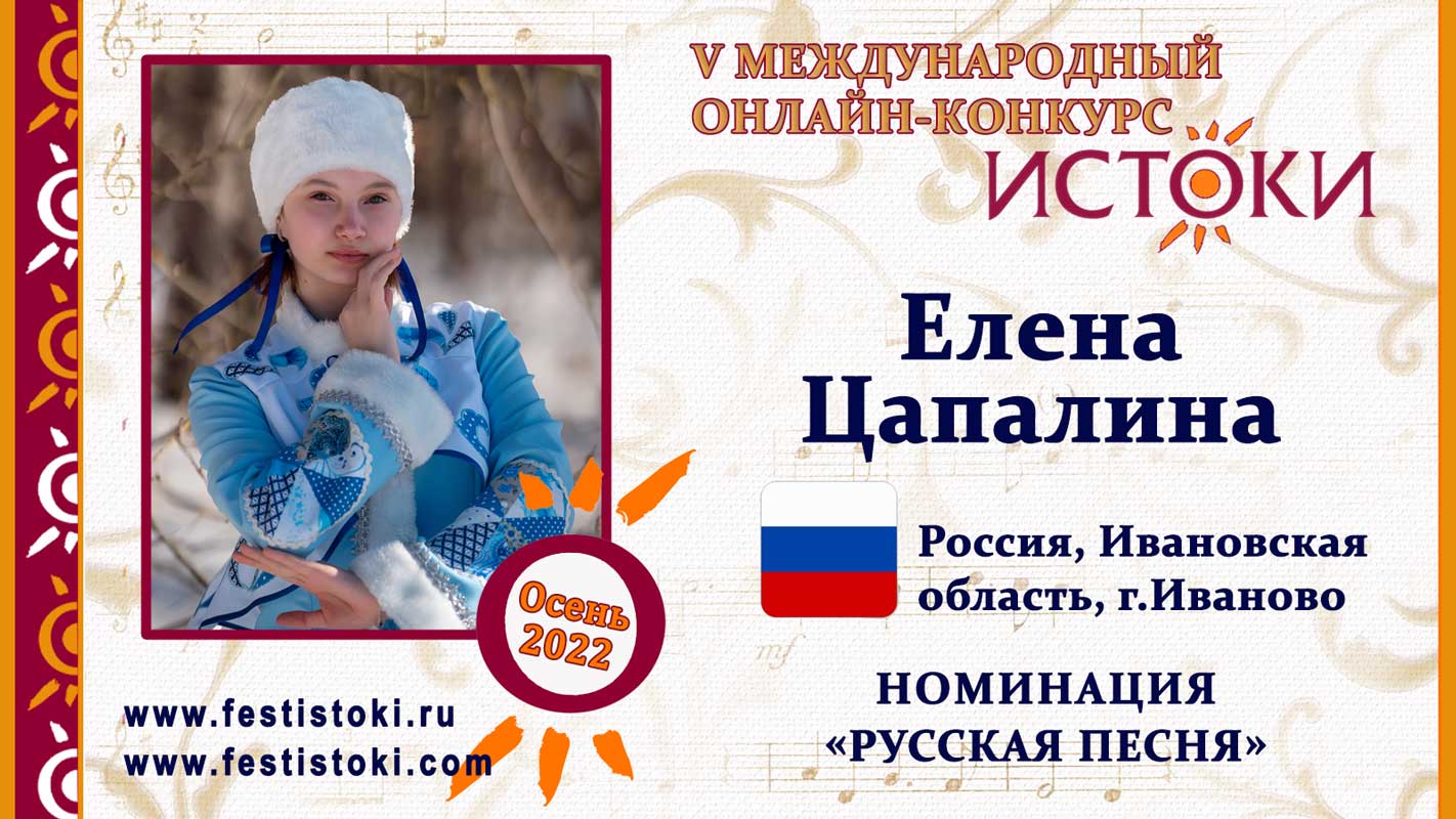 Участник V Международного онлайн-конкурса "Истоки". Номинация "Русская песня". Песня "Гляжу в озера синие". Автор текста Игорь Шаферан, Композитор Евгений Птичкин. Сайт: www.festistoki.ru / www.festistoki.com E-mail: festistoki@mail.ru