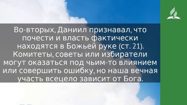 Я слышал о тебе, что дух Божий в тебе и свет, и разум, и высокая мудрость найдена в тебе (Дан. 5:14). Когда пиршество человечества придет к своему концу, потерянные будут просить, чтобы горы и камни пали на них и скрыли от гнева Агнца (см. Откр. 6:15–17). Только очень боязливые люди могут испугаться ягненка, но люди, находящиеся в отчаянии по причине окончательного отвержения Божьего Духа, боятся даже Того, Кто может оказать наибольшую помощь. Посетив Ирак, я побывал на развалинах древнего Вавилона и там еще раз прочитал ясную и точную весть, которую Святой Дух дал Даниилу. Здесь незадолго до падения Вавилона открылись все пути для избавления от страха, который в конечном счете разрушает человеческую личность. Посмотрите, как Даниил, исполненный Духом, бесстрашно разговаривает с царем. Во-первых обратите внимание на неподкупность Даниила. Он не соблазнился подарками царя (см. Дан. 5:17). Если мы будем поступать так же, силы зла не смогут оказать абсолютно никакого воздействия на нас. Во-вторых, Даниил признавал, что почести и власть фактически находятся в Божьей руке (ст. 21). Комитеты, советы или избиратели могут оказаться под чьим-то влиянием или совершить ошибку, но наша вечная участь всецело зависит от Бога. В-третьих, до тех пор, пока в царстве человеческого сердца не признается правление Божье, там будет царить безумие и безрассудство (ст. 27). В-четвертых, истинное величие обретается посредством искреннего смирения перед Богом (ст. 22). Склонившись у креста Иисуса, мы достигаем самого высокого положения, какого только можно достичь в этой жизни. В-пятых, отвержение истинного богопоклонения приводит к тому, что человек ставит себя в зависимость от ложных богов (ст. 23). Не практикуя поклонение Богу в духе и истине, мы оказываемся открытыми для религиозного материализма, пустых эмоций и холодного формализма. В-шестых, если мы не признаем Божьего права на владение нашей жизнью, что возможно благодаря Крови Иисуса, и если не прославляем Его своим телом и духом (ст. 23; см. 1 Кор. 6:19, 20), то в будущем нас ожидает трагедия вечной гибели (см. Дан. 5:30). Слава Господу за то, что мы можем позволить Святому Духу написать замечательные слова жизни на скрижалях нашего сердца сегодня! Иисус также был «взвешен на весах», и Его жертва найдена достаточной для всех. МОЛИТВА Отец Небесный, я признаю, что Ты Даятель и Вседержитель всего, что я имею. Ты — моя гордость. https://esd.adventist.org/library/periodicals/ezhednevnyie-chteniya/ #адвентисты #АдвентистыСедьмогоДня #Церковь #ЦерковьАдвентистовСедьмогоДня #ЦерковьХристианАдвентистовСедьмогоДня