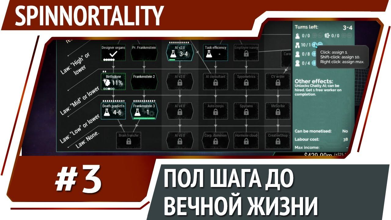 Продолжение прохождения киберпанк стратегии Spinnortality. Мегакорпорация заканчивает исследования необходимые для переноса сознания... _________________ Игры со скидками: https://strateg.shop/ $ Поддержать канал: https://www.donationalerts.com/r/strategic_commander ЯД: 41001170892548 https://money.yandex.ru/to/41001170892548 _________________ Spinnortality — это игра в жанре киберпанк стратегии. Управляйте мегакорпорацией, выпускайте продукты для разных стран, достигая свою главную цель: достижение бессмертия. _________________ Плейлист прохождение Spinnortality: https://www.youtube.com/playlist?list=PLwcszHbZP7D45aT079XswmJ7uSxMkcvlE _________________ Прохождение Civilization 5 на Божестве: https://www.youtube.com/playlist?list=PLwcszHbZP7D6F-qliWdjdsLoLP5PHOeY7 Прохождение Secret Government: https://www.youtube.com/playlist?list=PLwcszHbZP7D7RenolE9w8xdWER2fZaAfm Прохождение Urban Empire: https://www.youtube.com/playlist?list=PLwcszHbZP7D766Zsb-hYPpWUPXOk3Ui0M _________________ Игра из видео: #стратегия #Spinnortality. Канал про стратегии на максимальной сложности (hard, ветеран, легенда, ironman и т.д.). Новые серии каждый день!