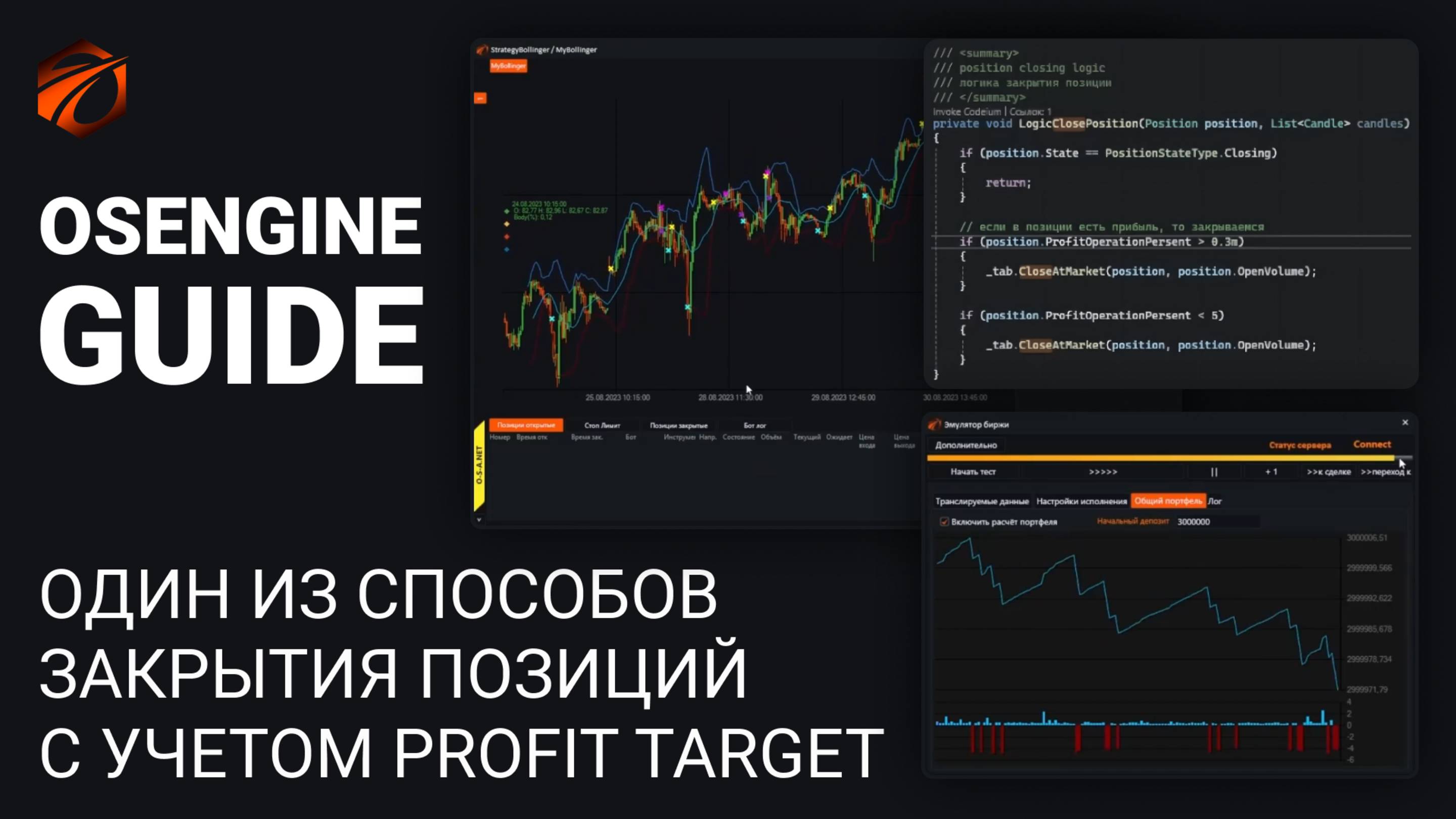 Многие наши пользователи интересовались, как закрыть позицию по достижении заданного уровня прибыли. Как обычно, в программировании есть множество способов сделать одно и то же. В этом видео рассмотрим способ, в котором в роботе анализируется уровень профита по позиции в процентах и абсолютных значениях. Свои комментарии и вопросы вы можете писать в официальной группе поддержки OsEngine: https://t.me/osengine_official_support МегаГайд по алготрейдингу: https://smart-lab.ru/company/os_engine/blog/1024149.php Регистрируйся в АЛОР и получай бонусы: https://www.alorbroker.ru/open?pr=L0745
