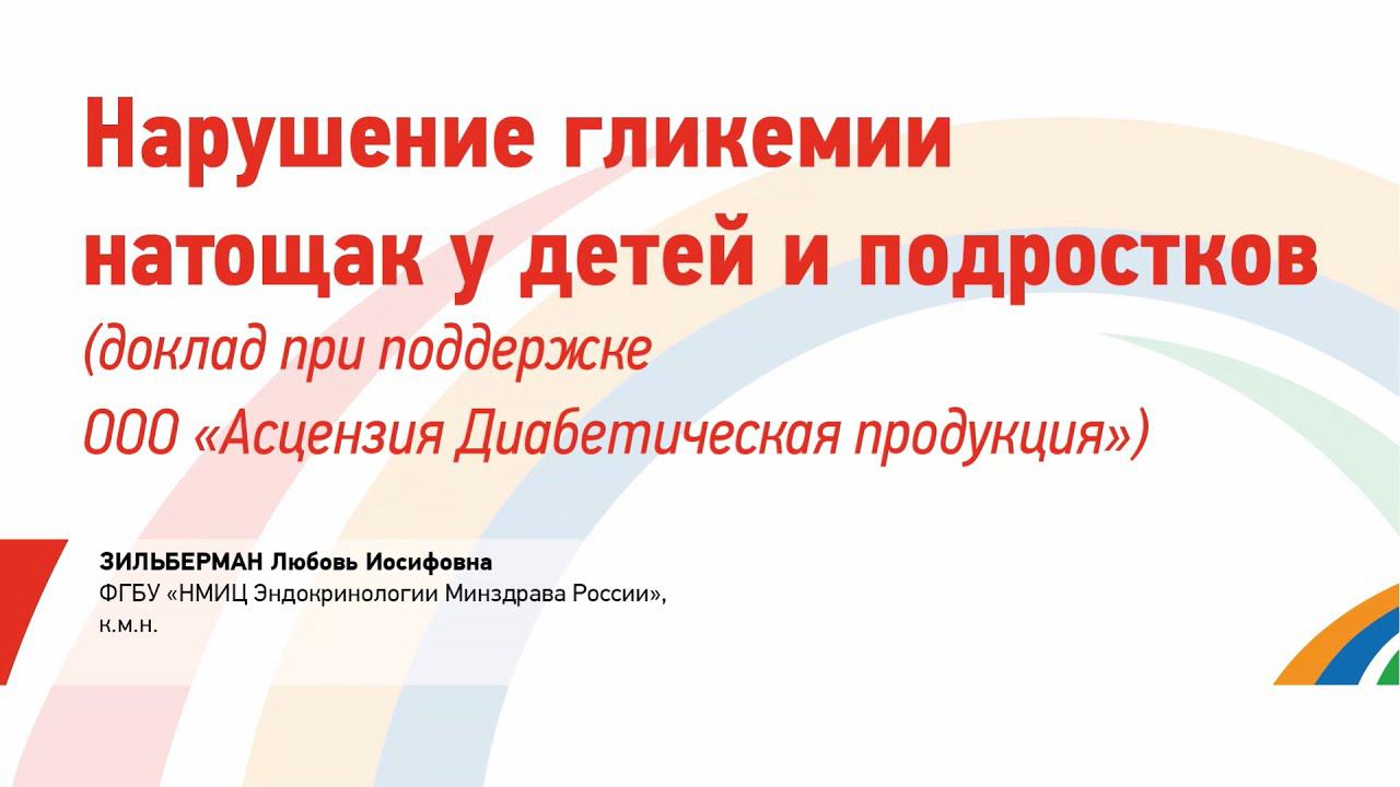 18.11.2020 XIX Городская научно-практическая конференция «Эндокринные аспекты в педиатрии» Самая частая причина повышения гликемии натощак у детей и подросков - это сахарный диабет 1-го типа. Однако существуют еще ряд патологий, вызывающих нарушения гликемии натощак. Эти состояния на конкретных клинических примерах рассматривает Л.И. ЗИЛЬБЕРМАН, к.м.н., ФГБУ "НМИЦ эндокринологии Минздрава России". Информационно-выставочное агентство «ИнфоМедФарм Диалог»: http://imfd.ru/ https://vk.com/imfd_dialog https://www.instagram.com/infomedfarm...