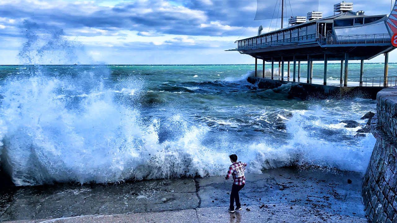 ДИКИЙ ШТОРМ пугает людей. ПАРЕНЬ стоял слишком БЛИЗКО. Показываю ВСЮ ПРАВДУ. Крым Ялта сегодня.