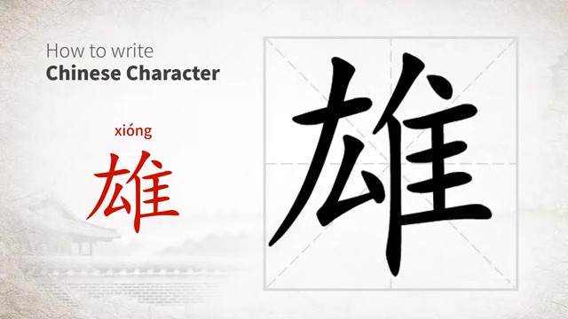 雄 (xióng) male; grand; powerful; heroic; mighty; imposing