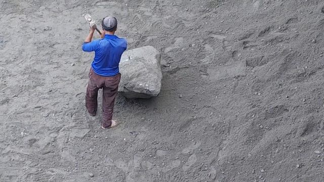 Строительство, шахтёры сбивают камни со стен карьера