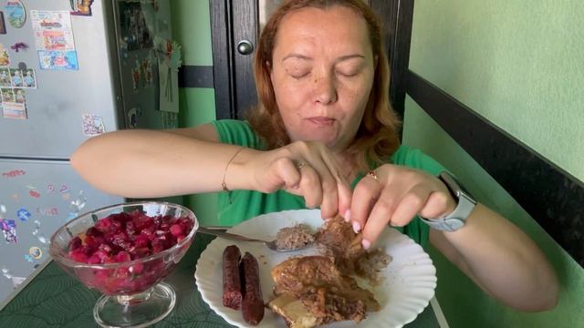 Мукбанг, гречка с говяжьими ребрами