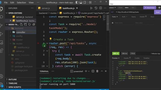 MERN Stack Tutorial | #12 - Create New Task (Route and Controller)