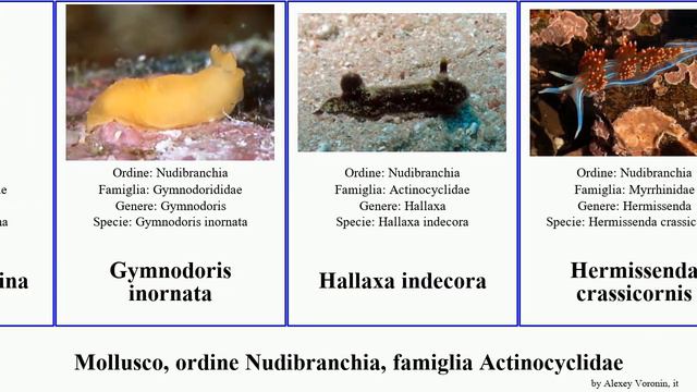 mollusco ordine Nudibranchia, famiglia Actinocyclidae. mollusca of Order Nudibranchia Family Miscellaneous, language: it. Vinyasa - Chris Haugen (Free YouTube library) Great thanks to Wikipedia for the information. #mollusco #ordine_nudibranchia #famiglia_actinocyclidae #marionia #trinchesia #phyllidia #capensis #dermatobranchus #doriopsilla #trapania #aldisa #ziminella #tritonia #polycera Adalaria loveni Aegires ortizi Aldisa albatrossae Aldisa andersoni Aldisa fragaria Aldisa trimaculata Aldisa zetlandica Ancula sp. Antiopella Antiopella cristata Antiopella fusca Apata pricei komandorica Armina californica Armina scotti Armina sp. Bonisa nakaza Bornella anguilla Bornella valdae Bornellidae Cariopsilla pharpa Carminodoris bifurcata Catriona Catriona columbiana Catriona rickettsi Ceratophyllidia Crimora Crimora papillata Crosslandia viridis Cuthona diversicolor Cuthona ocellata Cuthonella soboli Dendrodoris guttata Dendronotus dalli Dermatobranchus otome Dermatobranchus piperoides Dermatobranchus primus Dermatobranchus semistriatus Dermatobranchus striatellus Diaphorodoris papillata Dondice Dondice occidentalis Doriopsilla albopunctata Doriopsilla areolata Doriopsilla capensis Doriopsilla carneola Doriopsilla espinosai Doriopsilla miniata Doriopsilla nigrocera Doriopsilla nigrolineata Doriopsilla fulva Doris tricolor Doris verrucosa Eubranchus vittatus Flabellina riwo Flabellinopsidae Glaucilla Goniodoridella Goniodoris Goniodoris citrina Gymnodoris inornata Hallaxa indecora Hermissenda crassicornis Hexabranchus sanguineus Janolus barbarensis Janolus longidentatus Janolus capensis Knoutsodonta pictoni Lamellidoris Limacia cockerelli Limacia ornata Madrella ferruginosa Marionia Marionia arborescens Marionia elongoreticulata Marionia levis Marionia rubra Melibe colemani Melibe liltvedi Melibe rosea Nembrotha guttata Notodoris gardineri Noumeaella Okenia amoenula Okenia pulchella Paracoryphella ignicrystalla Paracoryphella islandica Paracoryphella parva Phestilla subodiosa Phestilla minor Phyllidia coelestis Phyllidia marindica Phyllidia ruppellii Phyllidia ocellata Phyllidia varicosa Phyllidiella granulata Phyllidiella striata Phyllidiopsis loricata Polaria polaris Polycera aurantiomarginata Polycera quadrilineata Polycera capensis Polycera sp. Protaeolidiella Tambja capensis Trapania armilla Trapania cirrita Trapania darveli Trapania pallida Trinchesia cuanensis Trinchesia diljuvia Trinchesia sibogae Trinchesia yamasui Triopha occidentalis Tritonia nilsodhneri Tritonia lineata Tritonia manicata Tritonia striata Ziminella circapolaris Ziminella salmonacea Ziminella abyssa Ziminella japonica