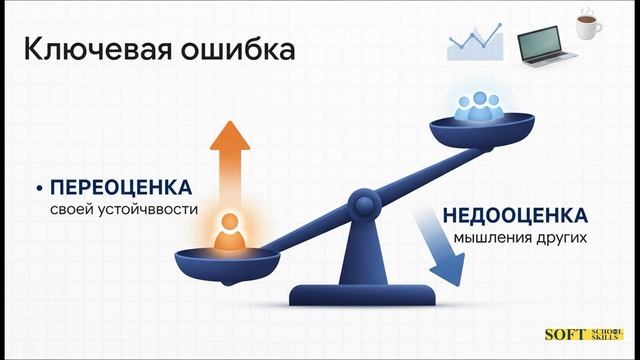 Чтобы закрепить знания и получать ежедневные порции полезных инсайтов, присоединяйтесь к нашему сообществу в Telegram-канале «Ошибк Шибки». Здесь мы кратко и емко разбираем конкретные примеры искажений из повседневности, делимся интересными фактами и проводим мини-эксперименты. Это ваш ежедневный тренажер для развития гибкого и острого ума. ➠ Переходите по ссылке и подписывайтесь: https://t.me/error_verus (или укажите актуальную ссылку) Всё о когнитивных искажениях, которые управляют вашими решениями. Краткие разборы ошибок мышления с простыми советами, как их избегать. ➠ Продолжение онлайн-курса ментальных ошибок: stepik.org/244049 Когнитивное искажение: Эффект третьего лица (англ. third person effect) Ситуация. Ты видишь в новостях политическую рекламу с простыми и эмоциональными лозунгами. Ты осознаешь, что это попытка манипулировать мнением избирателей. Эффект. Ты уверен, что такая примитивная реклама не оказывает на тебя никакого влияния, потому что ты анализируешь информацию критически. При этом ты считаешь, что большинство других людей легко поддадутся этому влиянию и изменят свои взгляды. В чем подвох (т.е. какая когнитивная ошибка). Ошибка заключается в том, что ты переоцениваешь свою собственную устойчивость к манипуляциям и недооцениваешь критическое мышление других людей. Ты ошибочно полагаешь, что находишься в привилегированной позиции "наблюдателя", в то время как все остальные являются "жертвами" влияния. Проще говоря. Ты думаешь, что любая манипуляция или пропаганда действует на всех, кроме тебя. Ты веришь в свою исключительную способность видеть правду, которой лишены окружающие. Контрмера. Когда ты замечаешь, что считаешь себя невосприимчивым к какому-либо влиянию, спроси себя: "а действительно ли я настолько объективен?". Помни, что все люди, включая тебя, подвержены влиянию, просто часто это происходит неосознанно. Будь одинаково критичен к информации при оценке ее воздействия как на себя, так и на других.