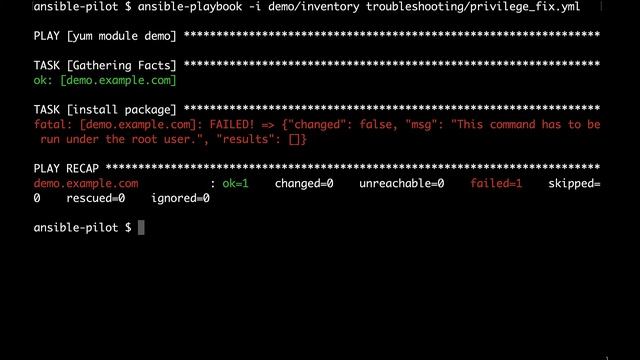 Privilege escalation errors are one of the most common Ansible problems. In a live demo, we are going to troubleshoot starting from the error message. We are going to investigate the root cause of the problem and fix it. https://www.ansiblepilot.com/articles/privilege-escalation-errors-ansible-troubleshooting/ FREE Top 10 Best Practices of Ansible Automation: save time, reduce errors and stress - http://eepurl.com/hJv3j9 BUY the Complete PDF BOOK to easily Copy and Paste the 200+ Ansible code 200+ Automation Examples For Linux and Windows System Administrator and DevOps https://leanpub.com/ansiblebyexamples my VIDEO COURSE: Ansible by Examples 200+ Automation Examples For Linux and Windows System Administrator and DevOps https://www.udemy.com/course/ansible-by-examples-devops/?referralCode=8E065F6D6F8622A3DEC8