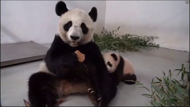 Маленькая панда пыталась выпросить у мамы кусочек лакомства