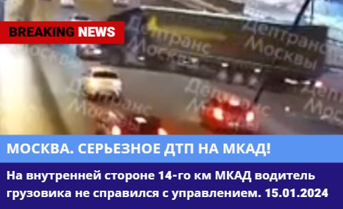 На внутренней стороне 14-го км МКАД водитель грузовика не справился с управлением. 15.01.2024