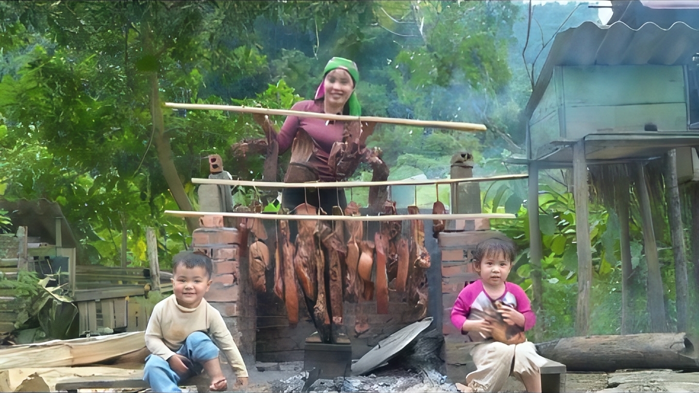 Готовлю копченую свинину со своими двумя маленькими детьми, а затем отправляю ее на рынок. Дуонг
