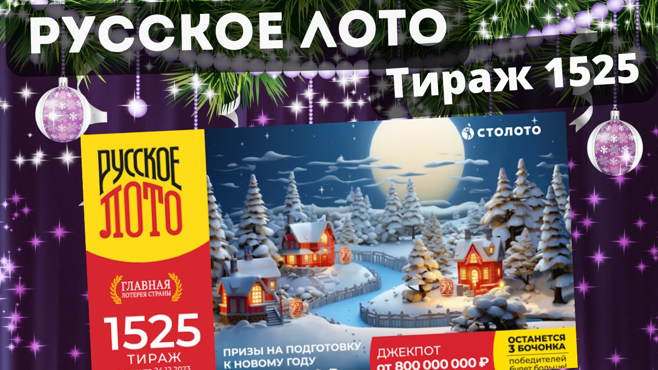 Русское лото, 1525 Тираж, Проверить билет, ПРИЗЫ НА ПОДГОТОВКУ К НОВОМУ ГОДУ по 300.000₽