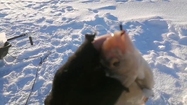 Решил испытать удачу в морозный день на домашнем водоёме