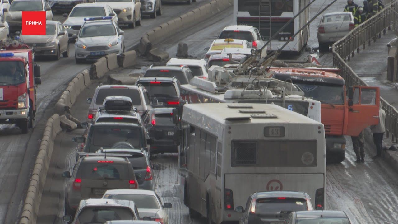 Снова авария с грузовиком на Копылова. Второй раз за месяц. Сегодня утром КАМАЗ перелетел бетонные разделители, попутно задев несколько авто. Двоих человек увезли на скорой. В возможных причинах происшествия разбиралась Стефания Мякишова. КАМАЗ перескакивает метровый разделитель и вылетает на встречку. Бетонное перекрытие отлетает в проезжающую мимо «Гранту». Ещё четыре легковушки успели увернуться от раскуроченного грузовика. Его водитель, говорит, потерял сознание после удара. Юрий, водитель КАМАЗа — Начал перестраиваться, у меня иномарка, а у него Газель шла впереди. Он тормозить и ко мне пристроился, я вывернуть не смог и меня прижало сюда. Колесо кидануло и на блоки. Без сознания меня сюда вытаскивали. Последствия ДТП ещё несколько часов продолжают стеснять автомобилистов. Пробка растянулась от Киренского почти до Робеспьера. Водителей КАМАЗа и Лады госпитализировали. Владелец Хонды не пострадал, его авто на ходу, но явно потребует ремонта. Мужчина винит во всём дорожное покрытие, говорит асфальт хоть и начали ремонтировать, но ездить легче не стало. Максим, водитель автомобиля «Honda» — Он меня получается зацепил, когда я перестраивался. Я и по зеркалам смотрел, у меня никого не было потом слышу хруст и всё. Скорее всего из-за того, что сняли асфальт. По результатам освидетельствования все участники ДТП — трезвые. Кто виноват — рассудят сотрудники ГИБДД. Но если удастся доказать, что в случившееся произошло из-за состояния дорожного покрытия, компенсацию придётся выплачивать уже муниципалитету. Егор Фролов, председатель красноярского регионального движения автовладельцев — Скорее всего, водитель грузовика пытался как-то уйти от тяжести последствий, чтобы не зажевать этого маленького автомобильчика под собой. И здесь ситуация никак не связанна с ремонтными работами. Водители должны смотреть в зеркала при перестроении, соблюдать скоростной режим и таких печальных последствий никогда и не будет. Три недели назад красноярцев поразило другое ДТП, так же на Копыловском мосту. Грузовик колесом заехал на бордюр, сломал железное ограждение и упал с моста. Водитель чудом остался жив, хоть и получил травмы. Сотрудникам ГИБДД он пояснил, что объезжал ямы, когда слетел с дороги. Красноярские автомобилисты в один голос поддержали пострадавшего — мол состояние асфальта на Копылова — кошмарное. Сразу после ЧП дорожники начали ремонт, хоть и говорили что всё планово и с аварией это не связано. Стефания Мякишова, корреспондент новостей «Прима» — Сейчас на Копылова продолжаются демонтажные работы. Недели дне назад начали снимать верхний слой асфальта. Но автомобилистам всё равно приходится объезжать вновь образовавшиеся ямы, торчащую из швов арматуру и другие неровности. В управлении дорог и благоустройства говорят, что ждут открытия асфальтовых заводов, а так же сухой и тёплой погоды, чтобы начать укладку дорожного полотна. А накануне в мэрии рассказали, что для удобства водителей ремонтные работы будут проводить только по ночам.