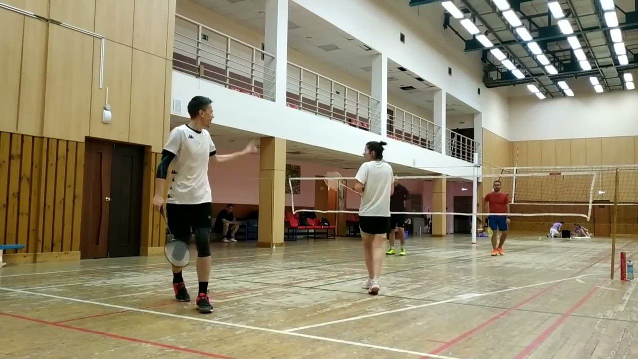 Тренировочная игра в бадминтон через сетку. Играют любители, новички и опытные бадминтонисты. Игра в Лестехе (МГУЛ ранее, сейчас называется филиалом Бауманки). Хочешь тоже играть? Приходи - https://badminton77.ru/map/4/ #badminton #badmintonlovers #badmintonrussia #lesteh #ЛесТех #бадминтон
