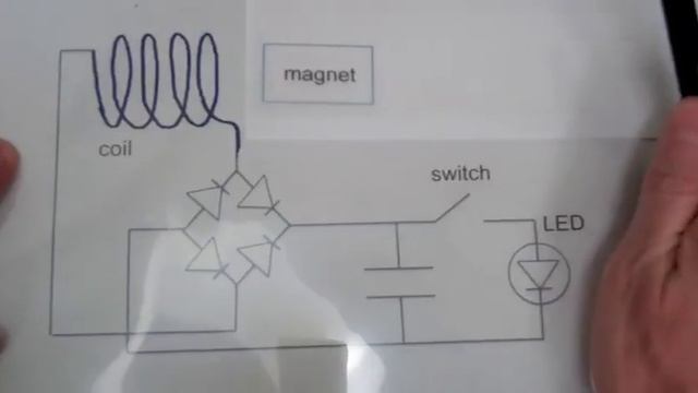 A flashlight that charges using electromagnetic induction is demonstrated