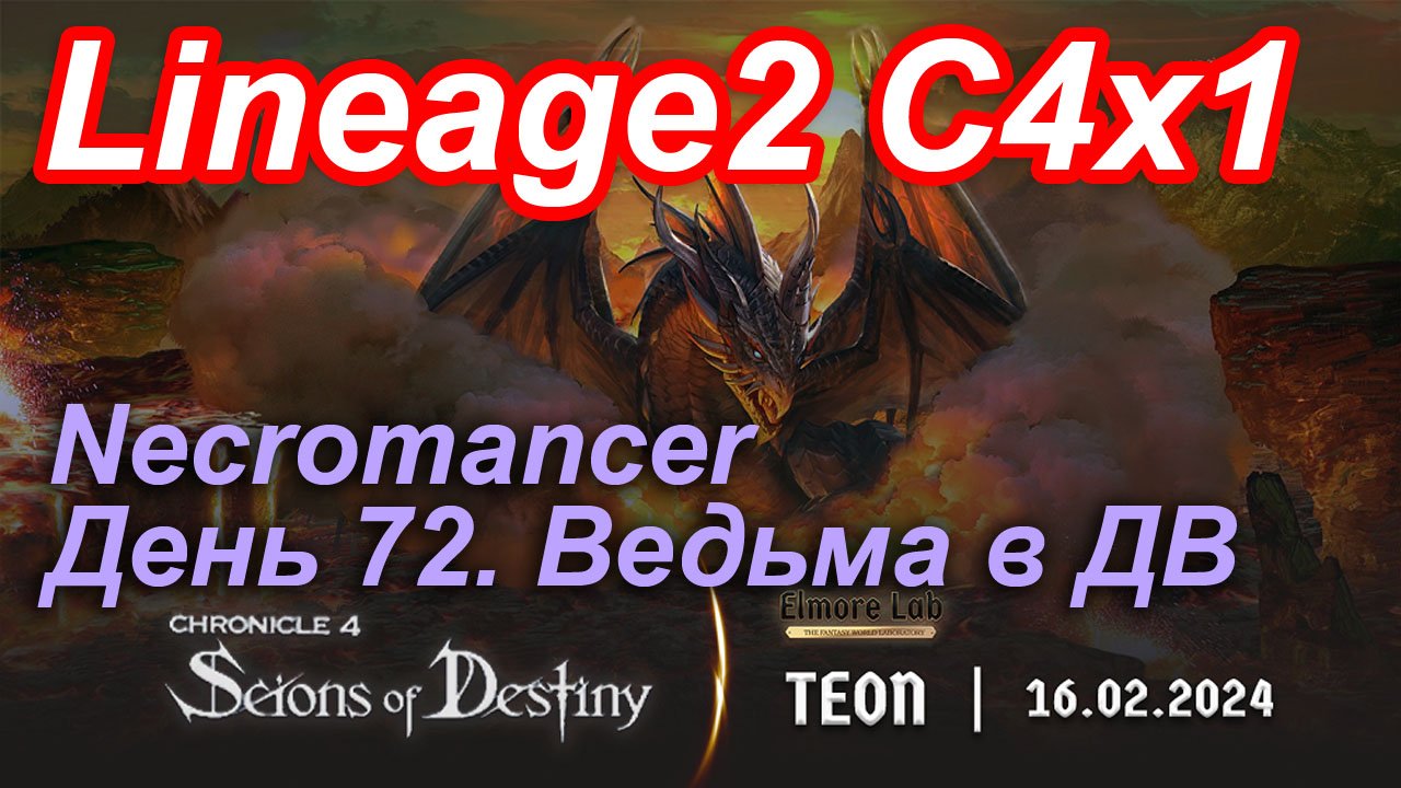 Lineage2. Elmorelab.com. Cronicle4 x1. Necromancer. День 72. Ведьма в ДВ.