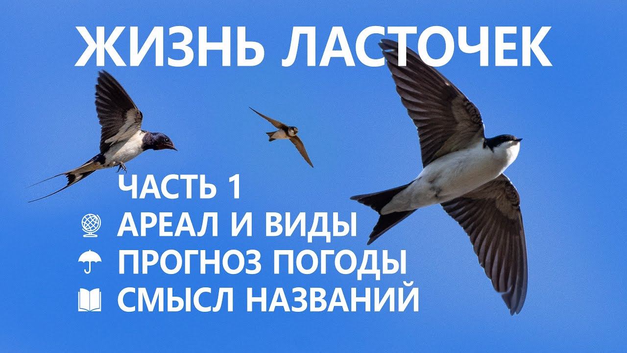 Жизнь ласточек. Часть 1-я из 5-ти. Прогноз погоды от ласточек. Распространение. Отличительные особенности видов ласточек России. Значение русских и научных названий. 0:00 Пролог 0:38 Песня ласточки-касатки 1:05 Как ласточки погоду предсказывают ☂️ 3:12 Ареал и биотоп ласточек России 3:30 Распространение деревенской ласточки 4:02 Ласточки на картине Шишкина «Рожь» 4:44 Где встречается Рыжепоясничная ласточка 5:12 Гнездовой ареал воронка ⬛ 5:33 Почему городская ласточка не живет в городе ️ 6:30 Где живет восточный воронок 6:50 Места гнездований береговых ласточек 〰 7:28 Распространение бледной береговушки 〰 7:46 Места обитаний скальной ласточки ️ 8:00 Самые распространенные ласточки России 8:21 Черный стриж и его отношение к ласточкам 9:41 Стрижатник – домик для стрижей ️ 9:56 Отличия ласточек и стрижей ⚖ 12:07 Отличия самцов и самок ласточек ♂♀ 12:33 Происхождение русских названий ласточек 20:15 Значение научных названий Жизнь ласточек #1/5. Виды и ареалы. Смысл названий https://youtu.be/wRb_BSvcJ0k?si=B24nZAgeEB80Rj1o Жизнь ласточек #2/5. ✈ Прилёт. Питание. ☂️ Ненастье https://youtu.be/wys_Wn6GQG0?si=xzdxsOZH7gGZJPJC Жизнь ласточек #3/5. ♬ Голос. Образование пары. Строительство гнезда https://youtu.be/kBmdjLfbIwo?si=ORyEJe0jKUny7IS3 Жизнь ласточек #4/5. Яйца. ⬯ Насиживание. Птенцы https://youtu.be/WOyAcV1G_7E?si=2Q4Bth8rsKUn4eR0 Жизнь ласточек #5/5. Слётки. ✈ Миграции. Враги. Помощь https://youtu.be/1uRnfPm_4Hs?si=P1Ndj5iESg9FlXoh ️ Карты ареалов http://ru-birds.ru/karta-nablyudenij.html https://commons.wikimedia.org/wiki/File:CecropisDauricaIUCNver2018_2.png https://commons.wikimedia.org/wiki/File:DelichonUrbicumIUCN.svg https://upload.wikimedia.org/wikipedia/commons/6/6e/Delichondasypus.png https://commons.wikimedia.org/wiki/File:RipariaRipariaIUCN.svg IUCN Red List of Threatened Species, species assessors and the authors of the spatial data., CC BY-SA 3.0, https://commons.wikimedia.org/w/index.php?curid=112674877 Haller1962. CC BY-SA 4.0, https://commons.wikimedia.org/w/index.php?curid=50292625 IUCN Red List of Threatened Species, species assessors and the authors of the spatial data., CC BY-SA 3.0, https://commons.wikimedia.org/w/index.php?curid=127466835 https://commons.wikimedia.org/wiki/File:PtyonoprogneRupestrisIUCN.svg Фото скальной ласточки: Martien Brand. originally posted to Flickr as 24003 Rotszwaluw / Crag Martin, CC BY 2.0, https://commons.wikimedia.org/w/index.php?curid=10015103 Воронок восточный Delichon_dasypus_-Hokkaido_-Japan By Stella C Eagle - originally posted to Flickr as On the pull, CC BY 2.0, https://commons.wikimedia.org/w/index.php?curid=8713061 ️ Фото рыжепоясничной ласточки https://ru.wikipedia.org/wiki/%D0%A0%D1%8B%D0%B6%D0%B5%D0%BF%D0%BE%D1%8F%D1%81%D0%BD%D0%B8%D1%87%D0%BD%D0%B0%D1%8F_%D0%BB%D0%B0%D1%81%D1%82%D0%BE%D1%87%D0%BA%D0%B0#/media/%D0%A4%D0%B0%D0%B9%D0%BB:Red-rumped_Swallow_from_the_Crossley_ID_Guide_Britain_and_Ireland.jpg ️ Фото утки касатки https://commons.wikimedia.org/wiki/File:Falcated.duck.arp.750pix.jpg Колоярцев М.В. 'Ласточки. Серия: Жизнь наших птиц и зверей. Вып. 10' - Ленинград: Издательство Ленинградского Университета, 1989 - с.248 Рулье К. Ф. Куда девалась городская ласточка? // Отечественные записки. — 1850. — Т. 71, № 7. A Handbook to the Swallows and Martins of the World Angela K. Turner, Christopher Helm, 1989 Фасмер М. Этимологический словарь русского языка: В 4 т.: Пер. с нем. — 2-е изд., стереотип. — М.: Прогресс, 1986-1987 Паевский В.А. Этимология названий птиц Палеарктики. М.–СПб.: Товарищество научных изданий КМК, 2018 г. Толковый словарь живаго великорускаго языка В.И.Даля: в 4 т. (1-е изд.) — Москва.: Типография М. О. Вольфа, 1863—1866. Птицы Москвы и Подмосковья. Полный определитель. Вишневский. В.А, 2-е издание, Фитон XXI, 2023 г. Автор, режиссёр, оператор, монтажёр © Василий Вишневский ⚜ 2023 Автор благодарит за помощь в создании фильма ️ Друзей канала , а также зрителей, согласившихся просмотреть️ и описать ✒️исходный видеоматериал ️ Сарат Агаева Динара Ахметшина Елена Булатова Динар Гареев Яков Косоруков и Татьяна Шишкина Варвара Тихонова Елена Трегубова Иван Скороходов Ярослав Чалченко Главный помощник режиссёра-оператор