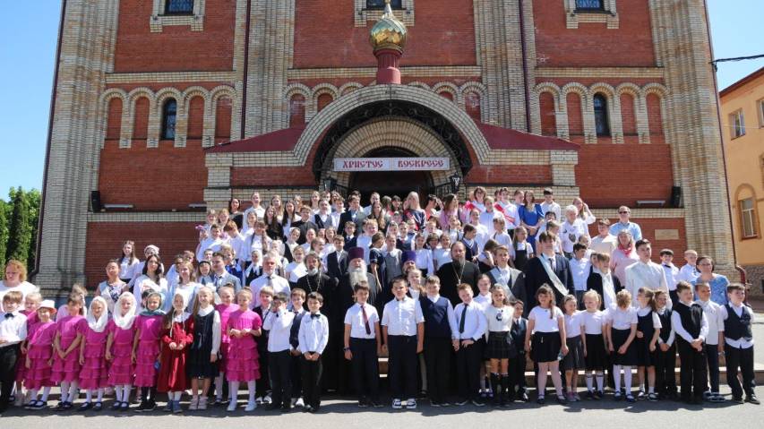 29 мая 2025 года во Всехсвятском соборе г.о. Домодедово состоялся благодарственный молебен на окончание учебного года. Возглавил молебен протоиерей Александр Трушин, а сослужили ему протоиерей Максим Колесник и иерей Мефодий Сердюк. В храме собрались не только гимназисты разных возрастов, но и их учителя. На молебне читалось послание святого апостола Павла и Святое Евангелие от Луки. В завершение молебна отец Александр окропил собравшихся святой водой. Затем была сделана общая фотография. После храма ребята отправились в здание гимназии. Вдоль лестницы (с первого по третий этаж) был организован «живой» коридор - учащиеся всех классов, кроме 9 и 11, выстроились по обеим сторонам лестницы и с трепетом ждали появления выпускников, чтобы вручить им цветы. Затем все гимназисты, их родители и учителя переместились в актовый зал, где начался торжественный концерт. С приветственным словом к собравшимся выступил и духовник гимназии протоиерей Александр Трушин, - он призвал выпускников добросовестно относиться к любому делу вне зависимости от его характера, - и протоиерей Владислав Гусар, который от лица родителей поблагодарил сотрудников гимназии, и иерей Сергий Заплатников, призвавший выпускников ничего не боятся, и директор гимназии Евгений Олегович Евдокимов. Начался концерт с музыкального номера. Было задействовано и пианино, и виолончель, и барабаны, и электрогитара. Участниками музыкальной группы стали гимназисты 10 -го и 11-го классов. Затем выпускников поздравили ученики начальной школы. Они читали стихотворения и танцевали. После на сцену были приглашены выпускники вместе с их классными руководителями: 9 класс выпускала Юлия Владимировна Иванова, а 11 - Вера Ивановна Морозова. На последнем звонке так же присутствовала и выпускница 9 класса подольского корпуса гимназии Дарья Беляева. Ребята благодарили своих учителей за их неоценимый труд, внимание и заботу. Со словами благодарности выступали и родители гимназистов. Затем выпускники 9-го класса танцевали вальс. Ну а в завершении мероприятия традиционно был дан последний звонок.