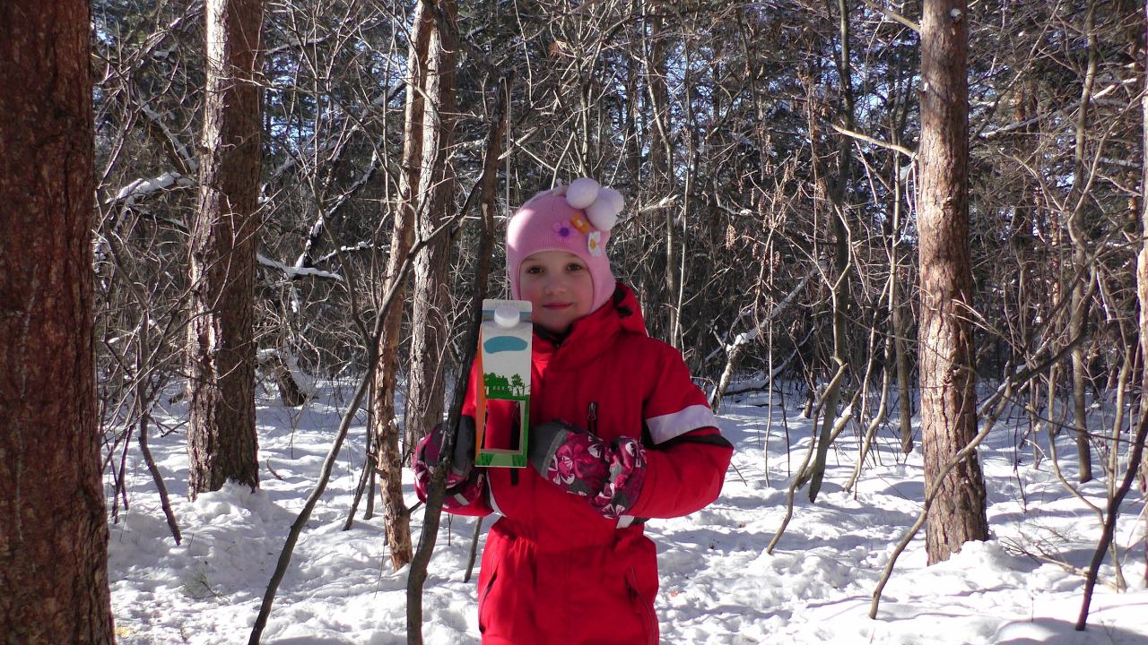 Вешаем кормушку и кормим птичек и белочку в парке им. Гагарина 14.02.17