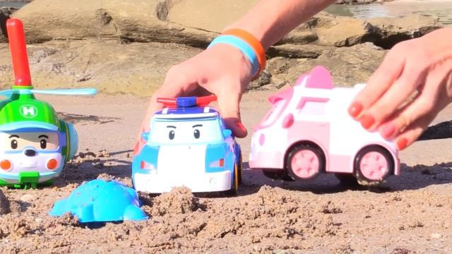 Робокар Поли - игрушечные машинки на пляже - видео для детей