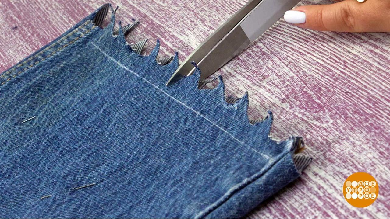 Джинсы: укоротить и украсить бахромой. Доброе утро. Фрагмент выпуска от 10.01.2024