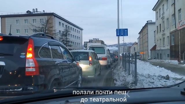 На авто по предновогоднему вечернему Магадану. Пробки в Магадане.