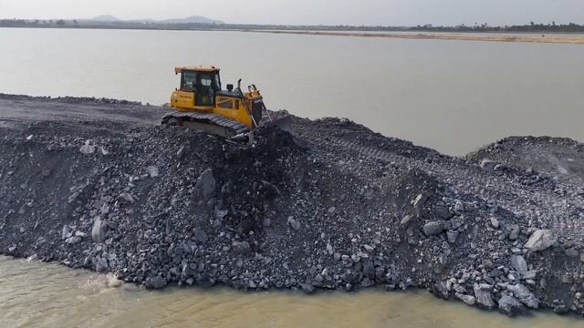 Строительство, очередной обзор засыпки дороги на озере
