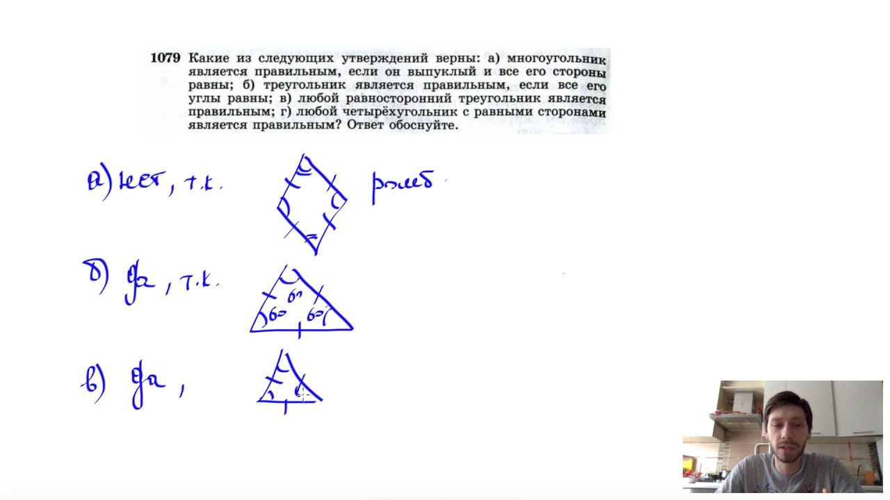 №1079. Какие из следующих утверждений верны: а) многоугольник является правильным