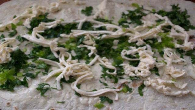 Лаваш с плавленым сыром и зеленью