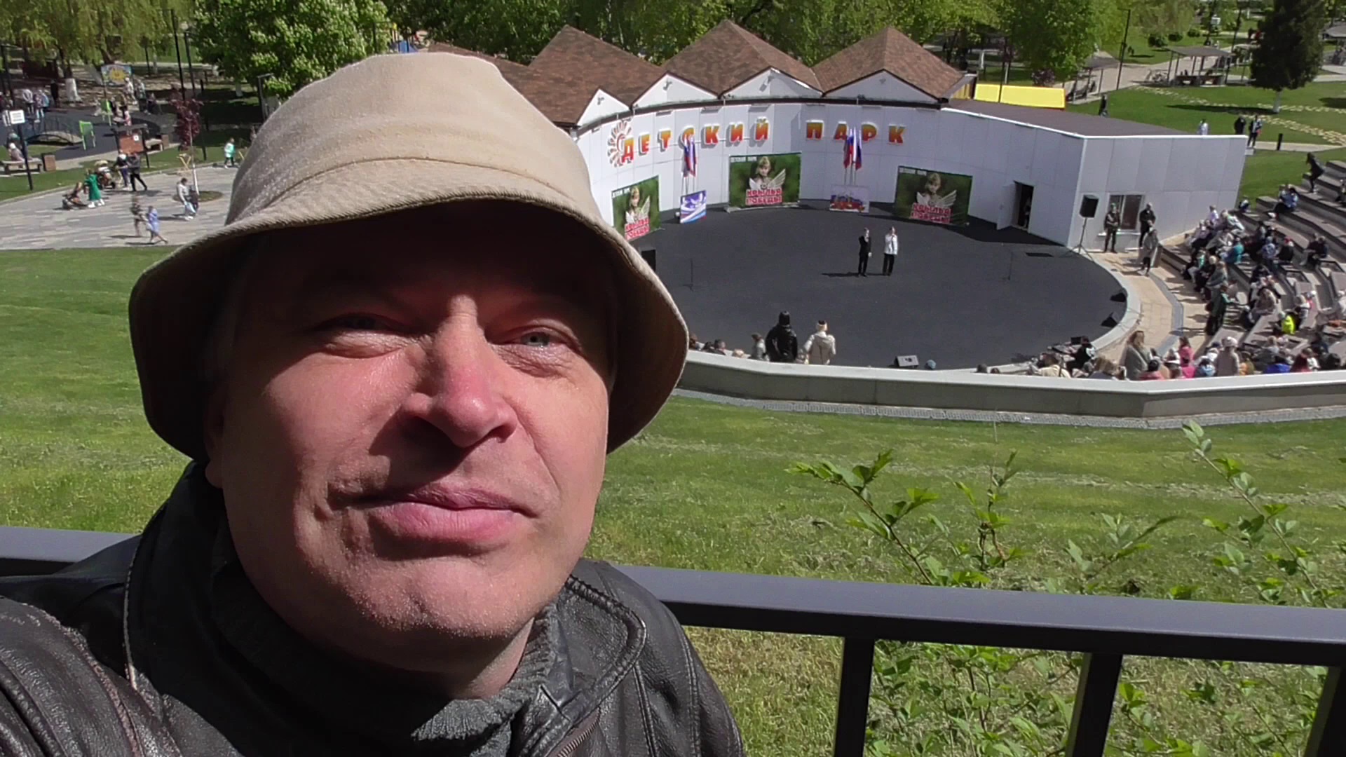 Геннадий Горин в детском парке слушает три песни