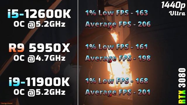Core i5 12600K OC @5.2GHz vs Ryzen 9 5950X OC @4.7GHz vs Core i9 11900K OC @5.2GHz | PC Gaming Benchmark Tested in 1080p and 1440p System Specs : Operating System : Windows 10 Pro 64 Bit CPU 1 : Intel Core i5-12600K OC @5.2GHz (Gigabyte Z690 AORUS Elite) CPU 2 : AMD Ryzen 9 5950X OC @4.7GHz (Gigabyte X570 Aorus Xtreme) CPU 3 : Intel Core i9-11900K OC @5.2GHz (Gigabyte Z590 AORUS Master) GPU : NVIDIA GeForce RTX 3080 10GB PSU : Cooler Master V1000 SMPS RAM : Corsair Vengeance RGB Pro Series 4*16GB DDR4 3600MHz Thank You for watching........please hit the thumbs up button and share if you like it and also please subscribe to my channel as this will motivate me and help me to make more videos like this.......