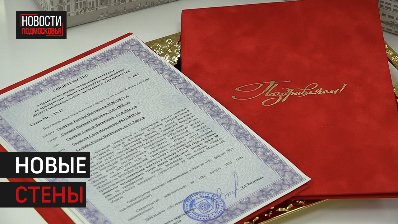 Еще две молодые семьи из Истры получили сертификаты на приобретение жилья
