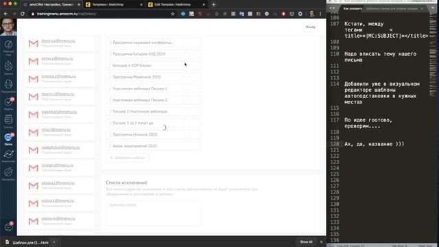 Как настроить отправку писем в amoCRM с помощью шаблонов Как сделать шаблон письма и в какой программе? Как загрузить шаблон в СРМ? Ответы в видео! P.S. В видео я зачем-то полез удалять ненужные блоки из шаблона через код, но это можно сделать еще на этапе подготовки шаблона в визуальном редакторе MailChimp В коде письма необходимо найти через поиск и исправить лишь два момента: 1. *|MC:SUBJECT|* – шаблон автоподстановки темы из MailChimp между тегами «title»«/title» заменить на вашу тему письма 2. *|MC_PREVIEW_TEXT|* – шаблон автоподстановки предварительного просмотра из MailChimp заменить на вашу текст, который пользователь видет до того, как открыл письмо