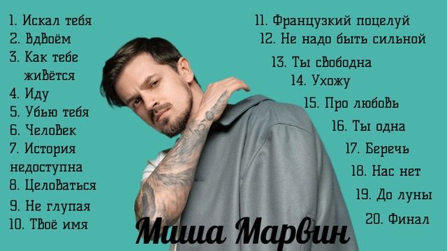 Сборник самых популярных песен Миши Марвина. Русский исполнитель стал популярным после песни с дуэтом с Ханной Французский поцелуй. Здесь собраны такие хиты, как Миша Марвин История недоступна, Целоваться, Искал тебя и множество дуэтов с популярными исполнителями. Приятного прослушивания и отличного настроения! С наступающим 2026 новым годом!