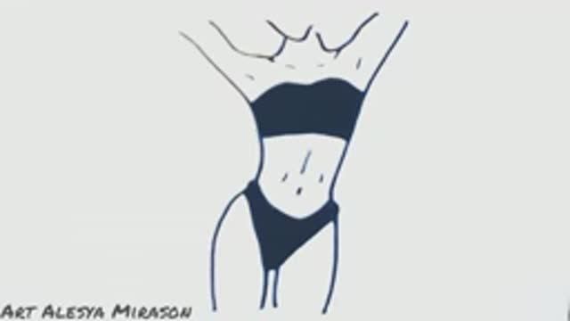 Рисую девушку в купальнике черным маркером!