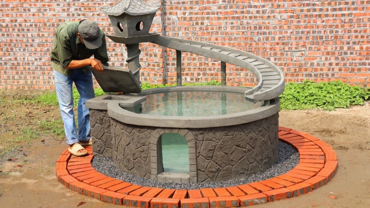 Дизайнерский уличный фонтан | Креативный аквариум из цемента и кирпича.