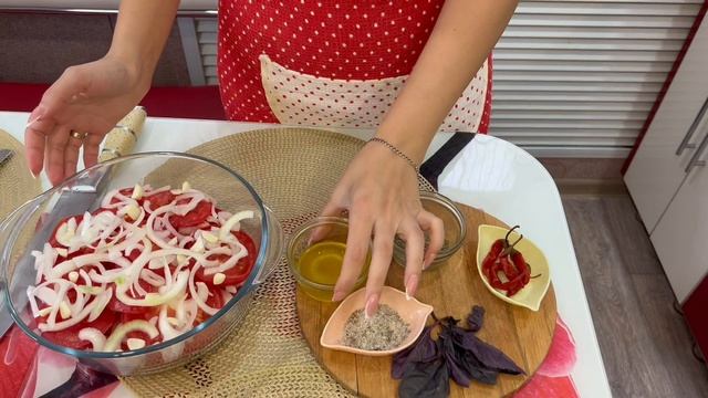 Потребуется: - помидоры - 3 шт. (крупные) - лук - 1 шт. - чеснок - 1/2 головки - острый перец (у меня маринованный)- 10 г - мед - 2 ст.л - масло оливковое - 20 мл - соль адыгейская - 10 г - базилик - пучок