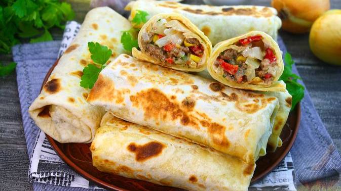 Вкусные и сытные рулеты из лаваша с фаршем и кукурузой. Мясной фарш обжаривается с луком, чесноком и сладким перцем, затем тушится с консервированной кукурузой, соевым соусом и кетчупом. Готовую начинку дополняют петрушкой и кинзой и вместе с маринованным луком заворачивают в лаваш. Подрумяниваются рулеты на сковороде. #РулетИзФарша #РулетСМясом #РулетСФаршем #РулетСКукурузой
